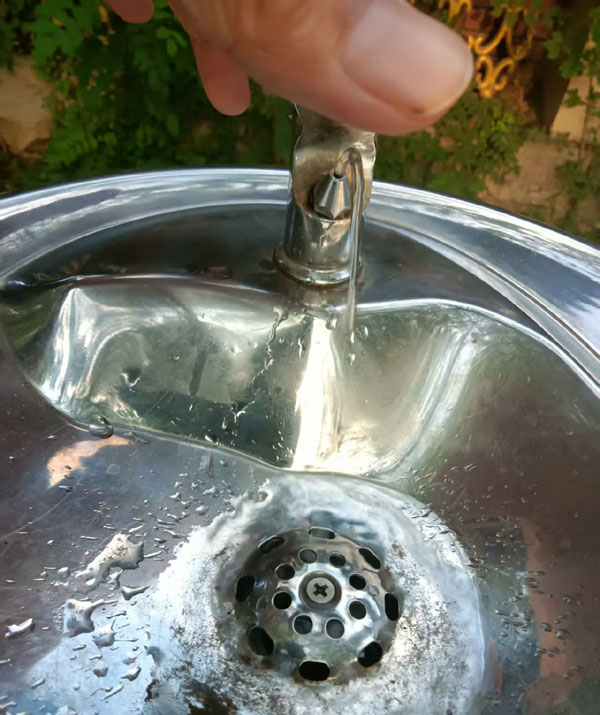 9月10日下午,筆者在清華路與智泉街交叉路口的南側(cè)50米左右的街邊,發(fā)現(xiàn)有1臺新近安裝的直飲水機(jī)。打開水龍頭,水流如注,十分清潔。接著我留意往四周巡視了一下,在附近的街區(qū)還沒有發(fā)現(xiàn)第2臺直飲水機(jī)。在我的記憶里,這或許我自己所見的第1臺直飲水機(jī)。希望這種便民設(shè)施越多越好,希望這個便民設(shè)施走進(jìn)社區(qū)和各個街頭,便于群眾應(yīng)急使用。
