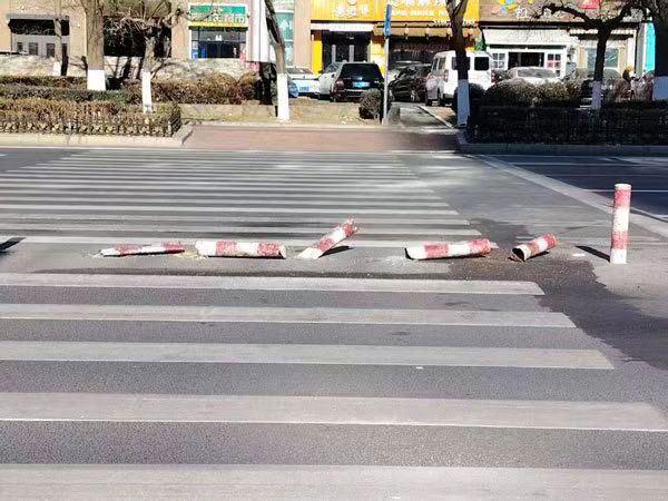 營口市渤海大街五個(gè)倒下的隔離樁已更新