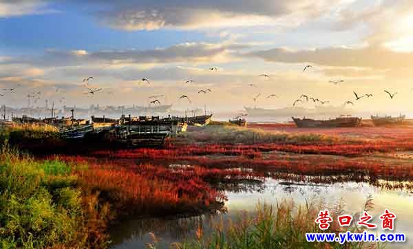在紅海灘北側(cè),古船參差地陳列在紅海灘、蘆葦蕩之中,老舊的船體上傳達(dá)出濃郁的北方漁家文化,形成了一道獨(dú)具漁家特色、頗具歷史滄桑的風(fēng)景。