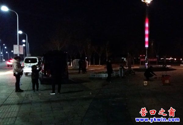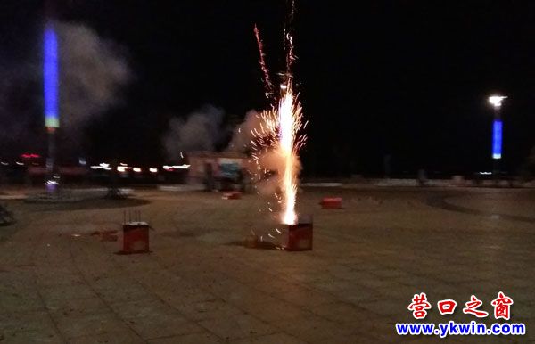 在營(yíng)口市平安廣場(chǎng)筆者看到,有的市民開著小汽車運(yùn)來(lái)自家購(gòu)買的煙花到廣場(chǎng)來(lái)放,問詢得知因?yàn)楹⒆蛹凹胰艘谑蹇礋熁?,公家沒有放煙花、自己也沒有地方放,只好來(lái)到這個(gè)廣場(chǎng)放煙花了。在這里還有許多家庭帶著不同的煙花,領(lǐng)著孩子全家人在各自表現(xiàn)自己的煙花。一處處大小煙花吸引來(lái)很多游人駐足觀賞和拿出手機(jī)拍照分享快樂。