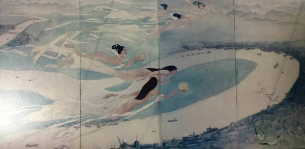 特發(fā)上世紀八十年代末我與劉文進先生、劉潮先生合作壁畫《遼海傳說》(局部),以饗民愿。