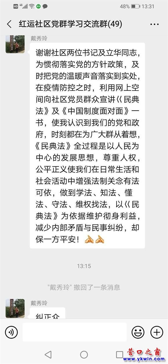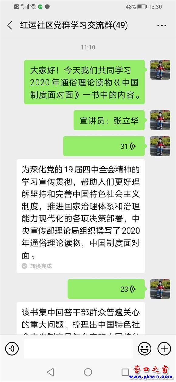 為深化黨的十九屆四中全會(huì)精神的學(xué)習(xí)宣傳貫徹,7月21日,社區(qū) “線上”開(kāi)展學(xué)習(xí)《中國(guó)制度面對(duì)面》網(wǎng)絡(luò)宣講活動(dòng),利用黨群微信群共同學(xué)習(xí)《中國(guó)制度面對(duì)面》內(nèi)容。