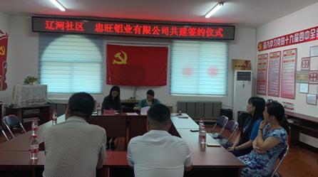 在現(xiàn)場,營口忠旺鋁業(yè)有限公司工會干事谷葉子與遼河社區(qū)書記汪芝羽分別代表企業(yè)和社區(qū)簽訂共建協(xié)議書。雙方圍繞“共建社區(qū)、共謀發(fā)展、共享資源、共建文明”的原則,細化了具體工作任務,在共建基礎上,充分發(fā)揮各優(yōu)勢,定期進行交流,共享工作經(jīng)驗,進一步提高凝聚力和戰(zhàn)斗力。