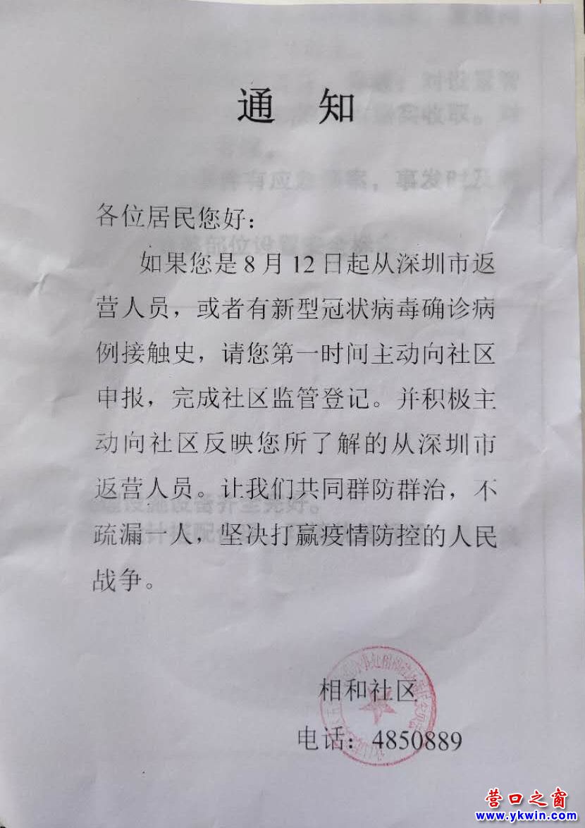 根據(jù)新冠肺炎疫情形勢變化,相和社區(qū)為做好疫情防控工作,根據(jù)省指揮部指示,從即日起排查8月12日始廣東省汕尾市來營人員,要求全部檢測一次核酸,結(jié)果陰性憑綠碼通行,費(fèi)用由屬地承擔(dān),對于汕尾市陸豐市來營人員除進(jìn)行一次核酸檢測外,需從來營之日起補(bǔ)齊居家隔離14天。