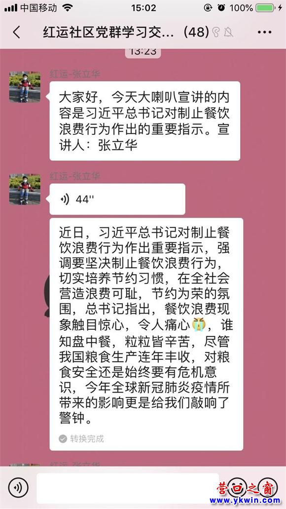為進(jìn)一步開展“大喇叭”主題宣講活動(dòng),9月1日,社區(qū) “線上”學(xué)習(xí)了習(xí)近平總書記對(duì)制止餐飲浪費(fèi)行為作出的重要指示。