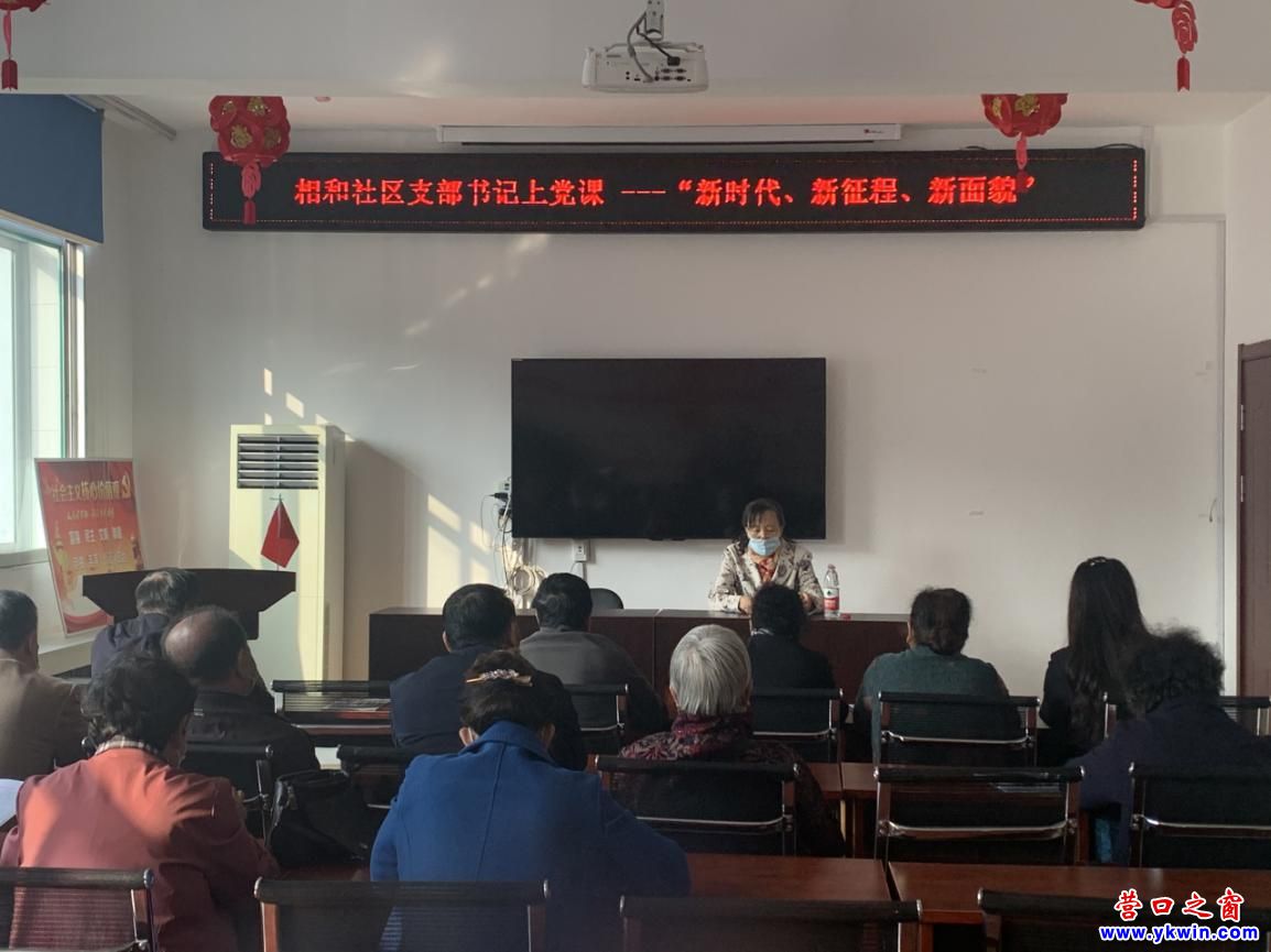 為深入貫徹落實(shí)習(xí)近平新時(shí)代中國(guó)特色社會(huì)主義思想,10月20日上午,相和社區(qū)福民黨支部書(shū)記劉秀慧同志利用每月黨員活動(dòng)日為社區(qū)黨員上一節(jié)主題為“新時(shí)代、新征程、新面貌”的專題黨課,社區(qū)黨員參與學(xué)習(xí)。