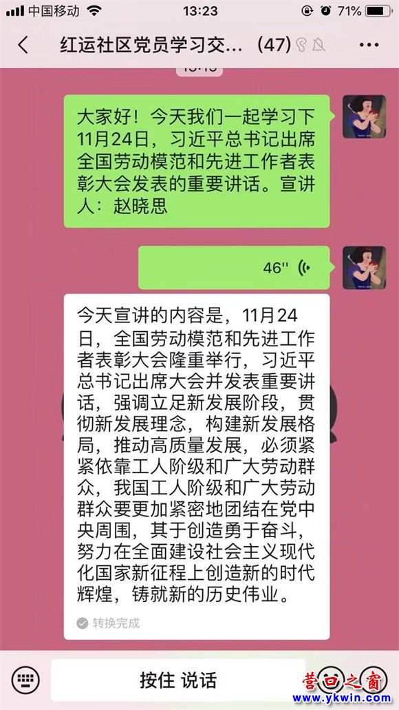 為進(jìn)一步開展“大喇叭”主題宣講活動,社區(qū) “線上” 宣讀了習(xí)近平總書記出席全國勞動模范和先進(jìn)工作者表彰大會發(fā)表的重要講話。
