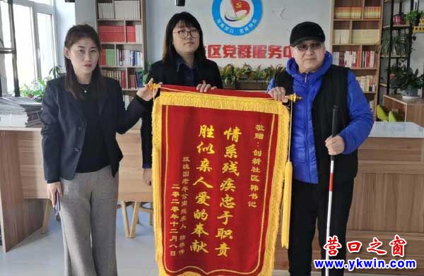 (營(yíng)口之窗社區(qū)訊)情系殘疾人——五臺(tái)子街道創(chuàng)新社區(qū)受贈(zèng)錦旗