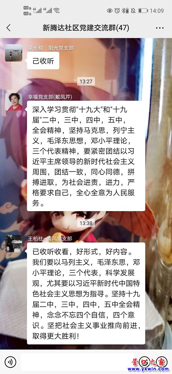 (營口之窗社區(qū)訊)在疫情防控時期,為確保黨員學習“不打烊”,新騰達社區(qū)黨委依然定時組織黨員進行學習。但是不同以往,為減少人員聚集,社區(qū)黨委利用網上平臺帶領黨員深入學習省委十二屆十四次全會精神,社區(qū)共有30余名黨員參加了此次線上互動學習。