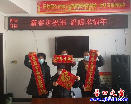(營(yíng)口之窗社區(qū)訊)當(dāng)一幅幅充滿美好祝福的春聯(lián)送到轄區(qū)黨員們的手中時(shí),也將節(jié)日的祝福提前傳遞到他們的心里,轄區(qū)黨員們拿著這寫滿祝福和美好憧憬的春聯(lián)時(shí)高興地連聲道謝,轄區(qū)內(nèi)外充滿了祥和喜慶的氛圍。