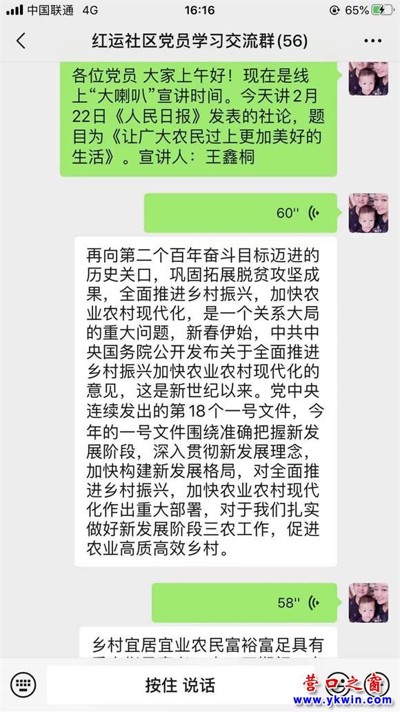 為進(jìn)一步開展“大喇叭”主題宣講活動(dòng),社區(qū) “線上” 宣讀了2月22日《人民日?qǐng)?bào)》發(fā)表的社論,題目為《讓廣大農(nóng)民過(guò)上更加美好的生活》。