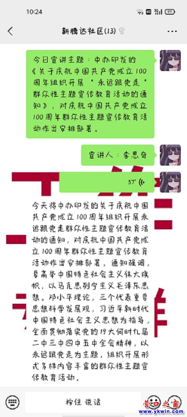 今日宣講主題:講中辦印發(fā)的《關于慶祝中國共產黨成立100周年組織開展“永遠跟黨走”群眾性主題宣傳教育活動的通知》,對慶祝中國共產黨成立100周年群眾性主題宣傳教育活動作出安排部署。