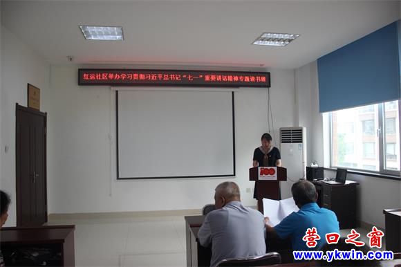 為深入學(xué)習(xí)貫徹習(xí)近平總書(shū)記在慶祝中國(guó)共產(chǎn)黨成立100周年大會(huì)上的重要講話精神,推進(jìn)黨史學(xué)習(xí)教育走深走實(shí),引導(dǎo)廣大黨員學(xué)史明理、學(xué)史增信、學(xué)史崇德、學(xué)史力行, 7月8日,紅運(yùn)社區(qū)黨委組織廣大黨員舉辦學(xué)習(xí)貫徹習(xí)近平總書(shū)記“七一”重要講話精神專題讀書(shū)班。