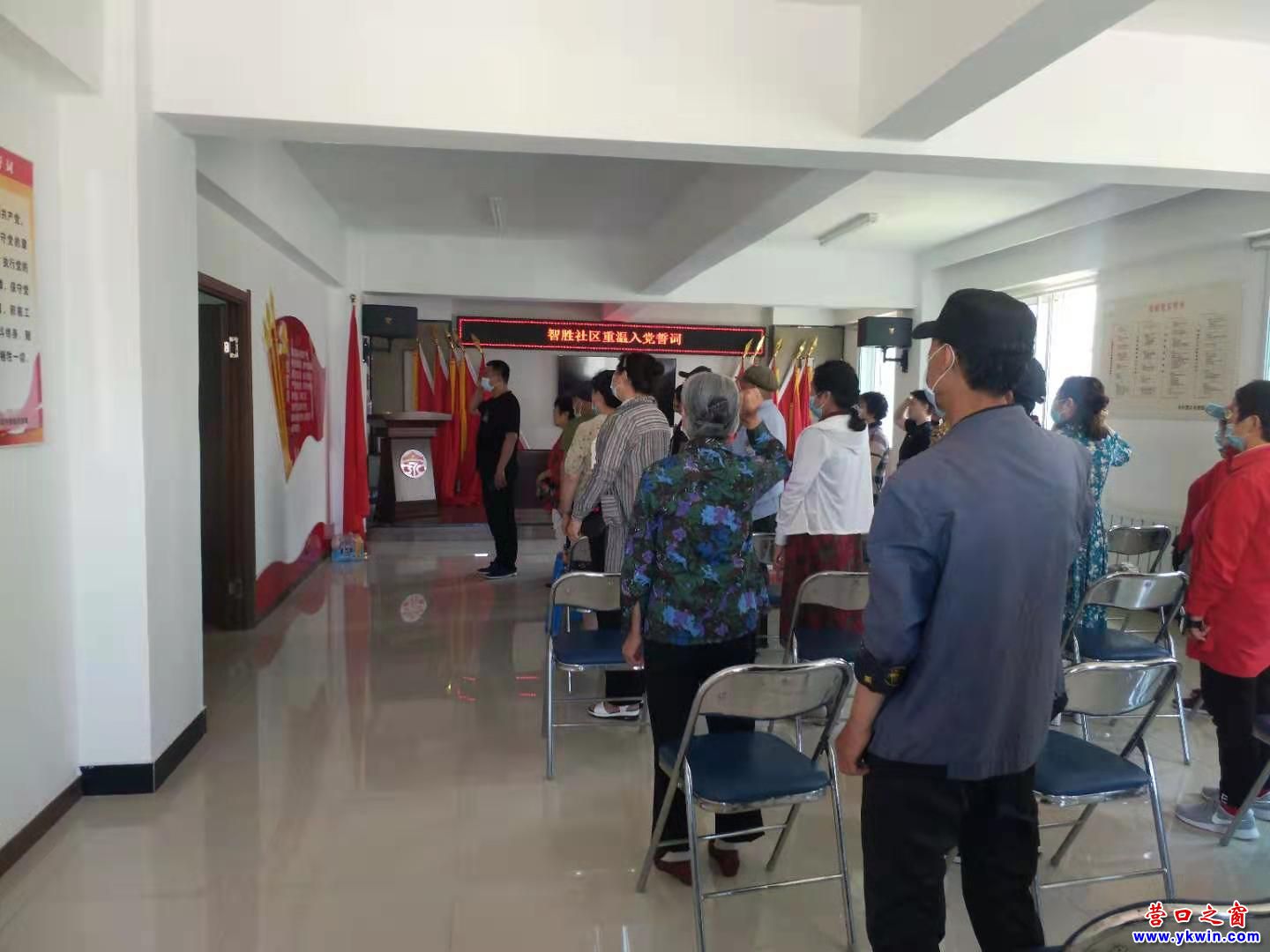 響應上級黨組織號召,今天智勝社區(qū)在社區(qū)三樓召開從主席詩詞當中汲取力量——專題黨課,在講黨課之前,社區(qū)書記帶領大家重溫入黨誓詞。