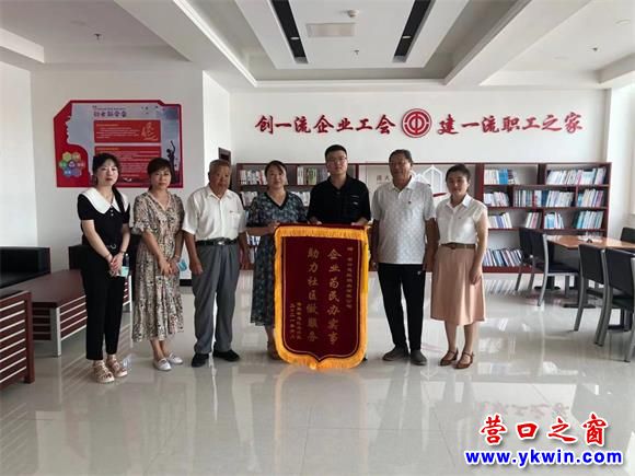 “感謝營口忠旺鋁業(yè)有限公司為我們小區(qū)‘工匠工作室’定制的操作臺、工具箱,為居民辦了不少實事。”7月23日上午,西市區(qū)總工會副主席王毅,紅運社區(qū)黨委書記鄭金令,黨委副書記張立華,居民代表將寫有“企業(yè)為民辦實事 助力社區(qū)做服務”的錦旗送到了營口忠旺鋁業(yè)有限公司,感謝共建單位對社區(qū)的大力支持。