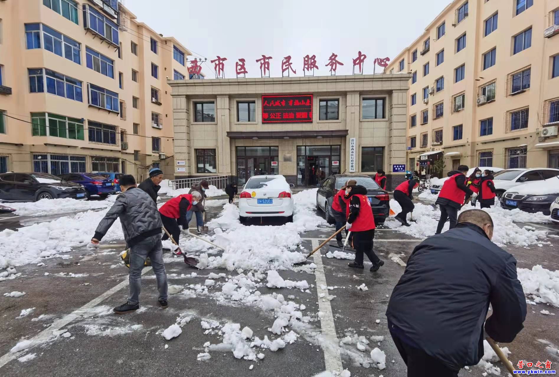 這場大雪在美化環(huán)境、凈化空氣的同時,也給我們的日常生活帶來了諸多不便。11月9日下午,為保障人們的出行安全和環(huán)境整潔,西市場社區(qū)聯(lián)合“三單八聯(lián)”共建單位西市區(qū)民政局黨員志愿者服務(wù)隊及漁市街道辦事處黨員志愿者們、轄區(qū)老黨員共計40余人及時清掃轄區(qū)內(nèi)西市區(qū)市民服務(wù)中心門前積雪,讓黨旗在應(yīng)對冰雪天氣工作第一線高高飄揚。