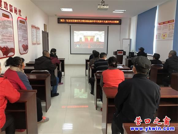 紅運社區(qū)新時代文明實踐站集中學習黨的十九屆六中全會精神