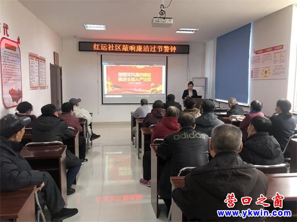 (營(yíng)口之窗社區(qū)訊)春節(jié)將至,為切實(shí)抓好節(jié)日期間黨風(fēng)廉政建設(shè),進(jìn)一步增強(qiáng)廣大黨員的廉政自律意識(shí),敲響廉潔過(guò)節(jié)警鐘,1月11日,紅運(yùn)社區(qū)黨委組織社區(qū)黨員干部及轄區(qū)老黨員共同開(kāi)展“廉潔警鐘常敲響 清正之風(fēng)迎團(tuán)圓”活動(dòng)。