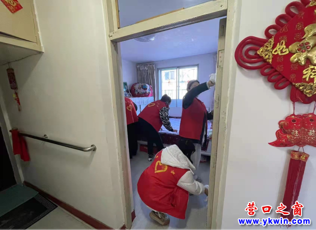 志愿者們來到老黨員張桂華家打掃衛(wèi)生,有的擦玻璃,有的掃地,有的擦家具,分工明確,動(dòng)作麻利。