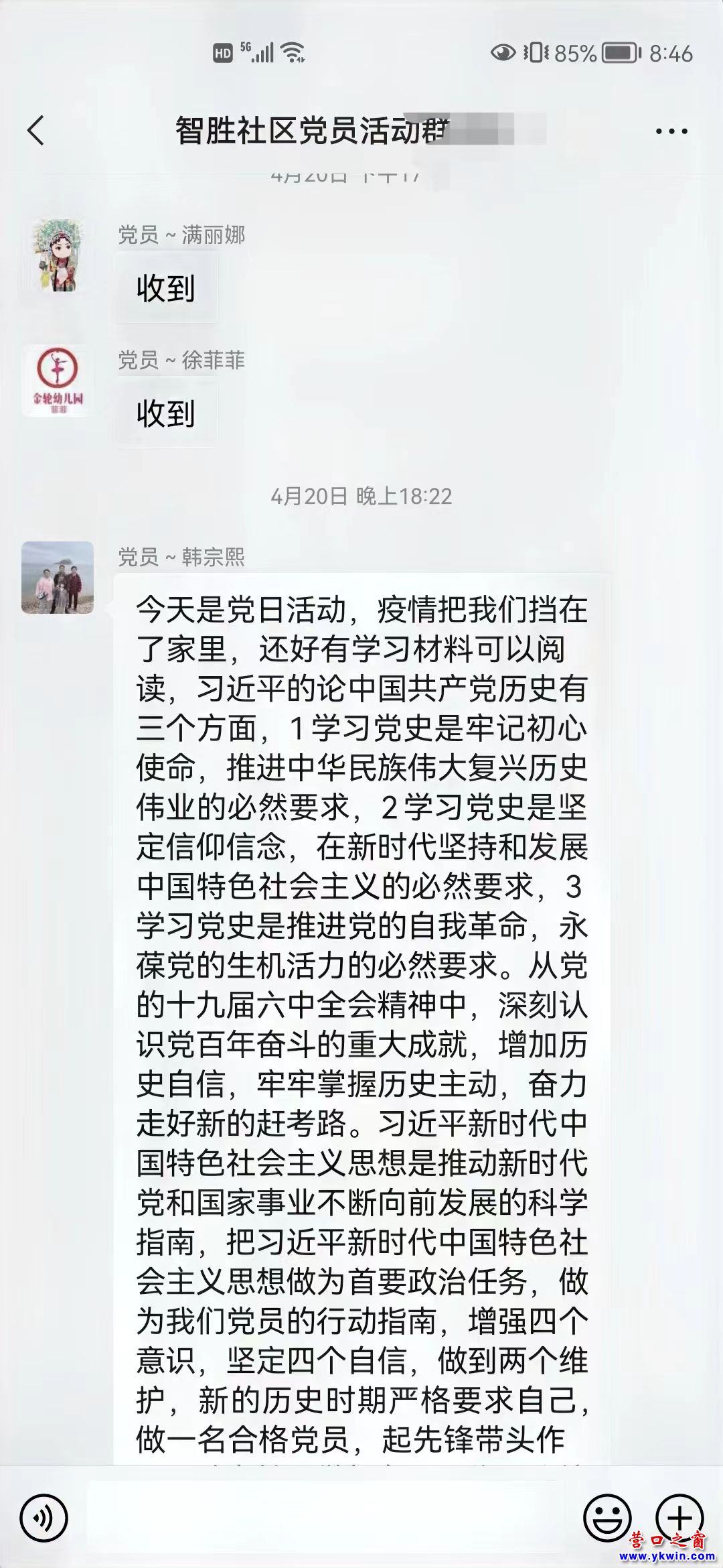 由于疫情原因,黨日學(xué)習(xí)在線上開展,方便老黨員的學(xué)習(xí)。我們要切實增強政治責(zé)任感和歷史使命感,以學(xué)習(xí)貫徹黨的十九屆六中全會精神為重點,不斷從黨的奮斗歷程中汲取智慧和力量。