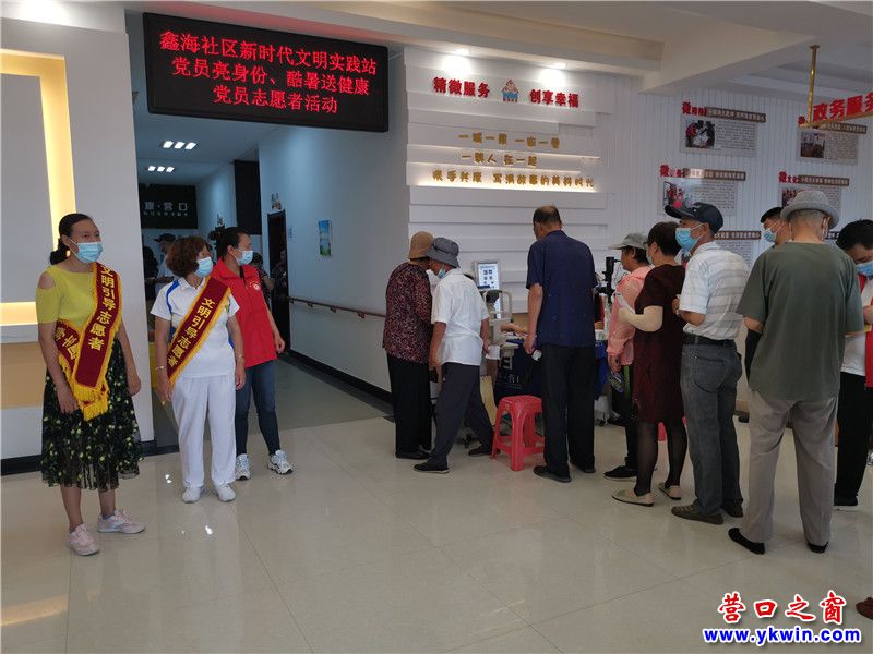 (營口之窗社區(qū)訊)為更好發(fā)揮廣大黨員志愿者的先鋒模范作用,2022年7月21、22日,營口市沿海衛(wèi)生院、愛爾眼科在鑫海社區(qū)新時代文明實踐站開展“黨員亮身份、酷暑送健康”老年人免費(fèi)體檢公益活動。