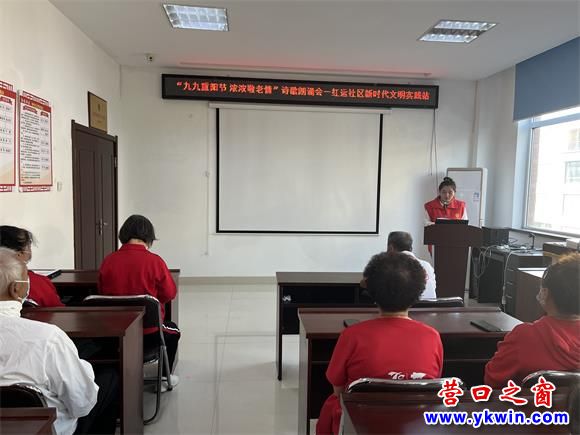 (營口之窗社區(qū)訊)每年的農(nóng)歷九月初九重陽節(jié),是我國的傳統(tǒng)節(jié)日,又稱重九節(jié)、曬秋節(jié)。為弘揚(yáng)中華傳統(tǒng)文化,營造“孝老、敬老、愛老、助老”的良好社會氛圍,大力促進(jìn)新時(shí)代社會主義精神文明建設(shè),9月27日,紅運(yùn)社區(qū)新時(shí)代文明實(shí)踐站舉辦“九九重陽節(jié) 濃濃敬老情”詩歌朗誦會。轄區(qū)居民、老黨員志愿者等五十余人參與本次詩歌朗誦會。