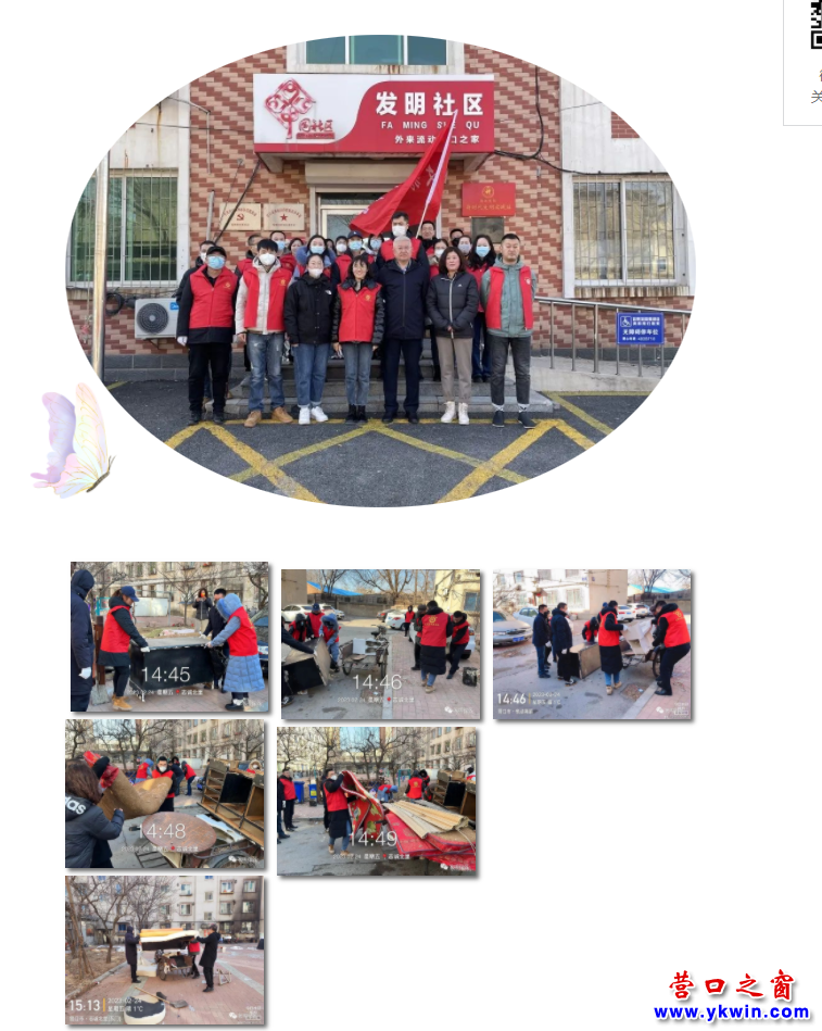 (營口之窗社區(qū)訊)為全面推進(jìn)創(chuàng)建全國文明城市工作,努力營造干凈、整潔、優(yōu)美的轄區(qū)環(huán)境,2月24日,發(fā)明社區(qū)聯(lián)合市文化旅游和廣播電視局、區(qū)退役軍人事務(wù)局、區(qū)紀(jì)委、得勝街道辦事處繼續(xù)開展“文明實(shí)踐日 靚麗星期五”活動(dòng)。志愿者們清堆放、掃垃圾,以實(shí)際行動(dòng)改善公共環(huán)境,提升廣大市民愛護(hù)環(huán)境的意識(shí),讓城市變得更溫暖、更和諧、更文明。