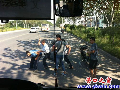 結(jié)果中年男子越罵越兇,司機(jī)一氣之下下車跟男子理論,結(jié)果男子居然動手開始打司機(jī)。車上的一名40歲左右的女乘客大喊了一聲,快下去幾個(gè)男的把他們拉來。聽到喊聲車上的幾個(gè)男士乘客都下車?yán)堋?br />