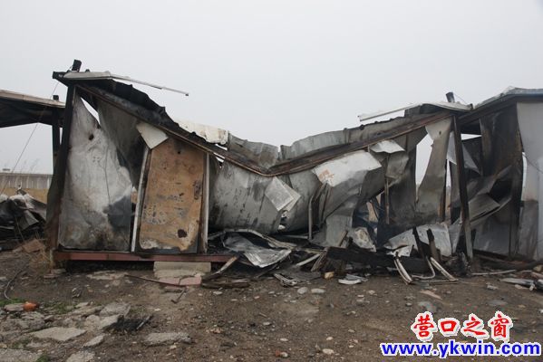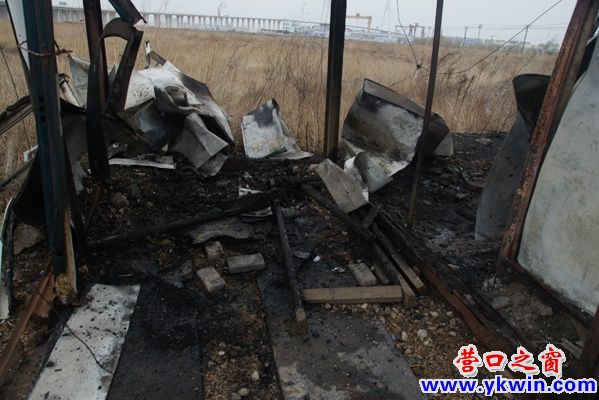 4月18日15時50分,營口市遼河大橋東側(cè)約200米處的一塊空地上,一幢彩鋼房失火,不到半小時,這幢彩鋼房燒得面目全非。