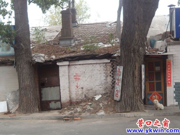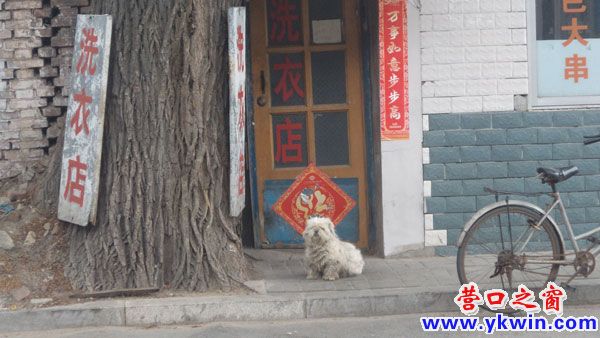營(yíng)口市站前區(qū)火車站附近的東市北街上有幾棵大樹(shù),一些店鋪都是緊鄰大樹(shù)。其中一個(gè)小洗衣店更是拿大樹(shù)做起掛桿,將兩塊寫(xiě)著“洗衣店”三個(gè)大字的牌子掛在樹(shù)上,而小店的門幾乎快要被大樹(shù)擋完。從外面看,大樹(shù)邊上的墻體已經(jīng)斷裂,洗衣店屋頂長(zhǎng)了雜草,但洗衣店與大樹(shù)相互依靠,小店貼了紅紅的春聯(lián),門口臥著一只白色小狗,路邊立著一輛自行車,給這道街增加不少趣味。