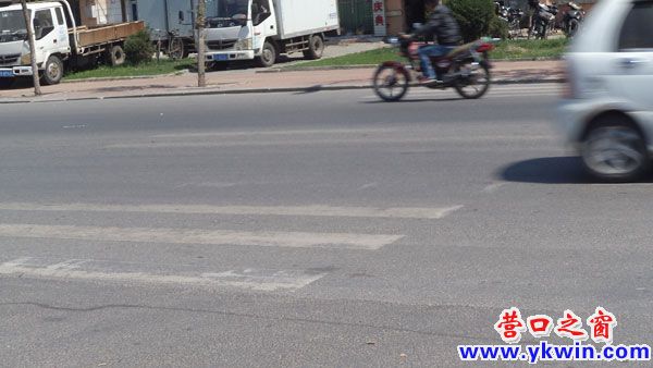 5月6日早上筆者在上班路上發(fā)現(xiàn)營口客運(yùn)站附近一個交叉口處的人行道斑馬線由于時間過長中間的斑馬線油漆已經(jīng)退掉,造成斑馬線出現(xiàn)斷層情況。