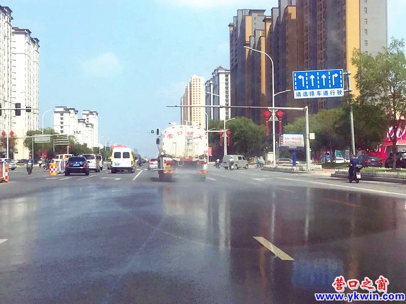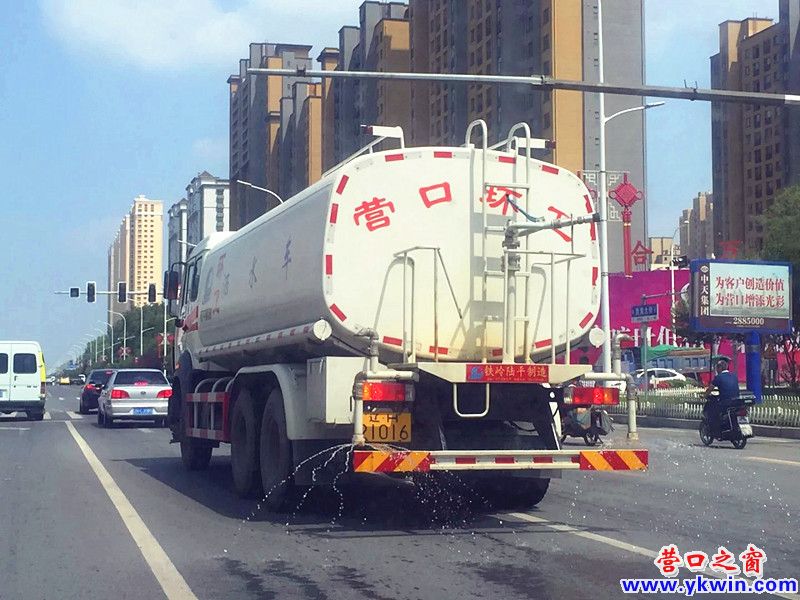 今天中午,大太陽已經(jīng)曬得行人頭昏目眩。小編在營口市渤海大街看到幾臺灑水車噴著兩股水柱正在緩緩前行,從車底噴向路兩側(cè)。所到之處,干燥的路面頓時濕潤了許多,在水的沖刷下,人們都感到一陣涼意。