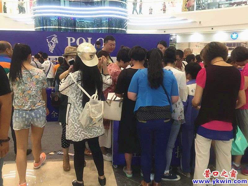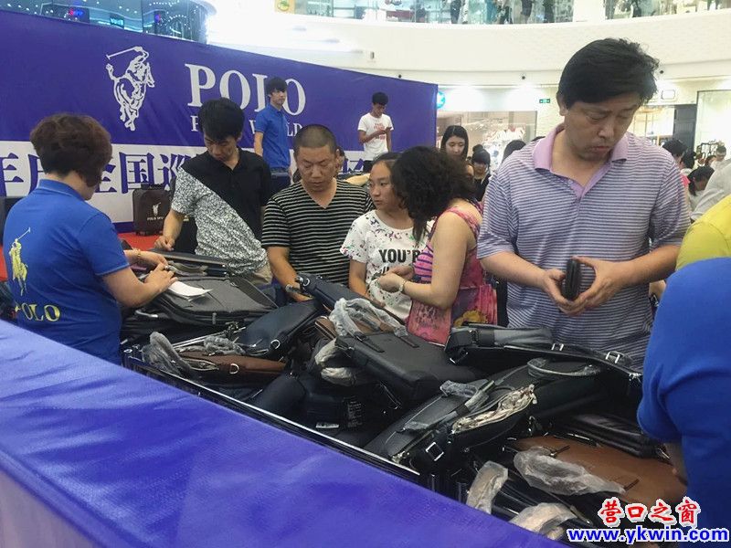 在營口市萬達廣場一樓大廳處,搭建了一個臨時的“POLO周年全國巡回展銷會”的展臺,商品以箱包、皮具為主。商品憑借著促銷力度大,全部商品低至一、二折,吸引了很多的顧客。