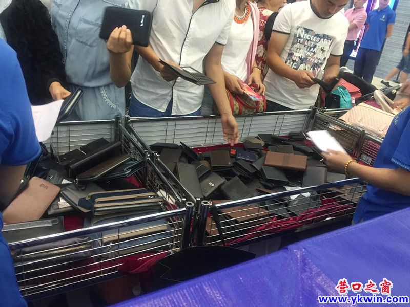 現(xiàn)場看到,很多市民都擠在里面,爭著搶著挑選商品,手上拿著,下面挑著,人流源源不斷,生意非常紅火?,F(xiàn)場的這種搶購狀況更是吸引了本來不太感興趣的一些顧客。展銷會中間放了一張桌子作為商品結(jié)算交費處,也已經(jīng)排成了小隊。商家還不時的喊著,“最大優(yōu)惠,誰搶著誰合適”,很多市民從里面走出來,都好像如獲至寶。小編在此處等待了一段時間,發(fā)現(xiàn)有些市民逛了一圈后,又回到了這里繼續(xù)挑選。還有發(fā)現(xiàn)了自己所買的皮包上面有劃痕,回來進行調(diào)換的。