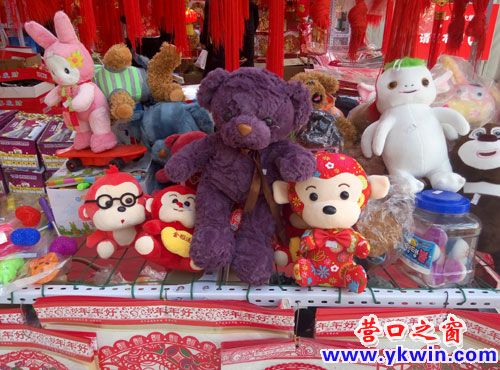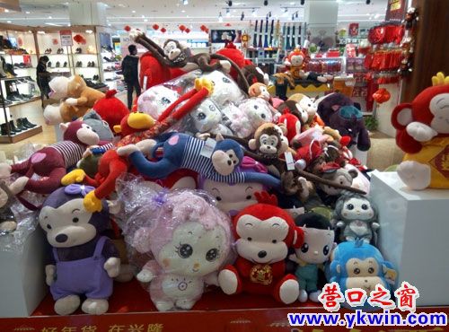 猴年春節(jié),在營口的各大商場商家們紛紛把猴子卡通形象毛絨玩具、飾品、貼紙等擺在顯眼的位置來招攬顧客,猴年吉祥物商品在營口熱賣。