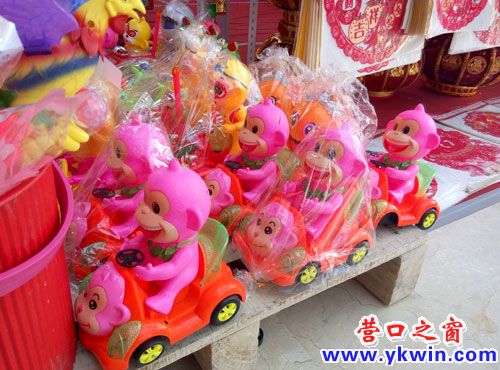筆者通過商家了解到在春節(jié)前,各種以“猴年”為主題的年畫、玩具和吉祥物等小商品已進(jìn)入熱銷發(fā)貨的高峰階段,在春節(jié)期間這種熱銷的勢頭仍在持續(xù)。猴子的形象活潑可愛,受各類人群喜愛,也難怪“猴”類吉祥物一直在營口熱賣了。