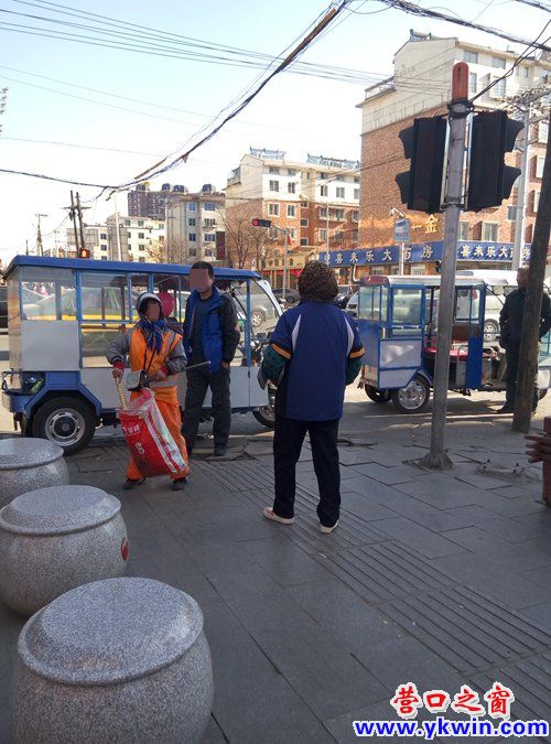 負(fù)責(zé)營口大潤發(fā)超市附近路段的環(huán)衛(wèi)工大姨13日下午照常打掃路邊衛(wèi)生,但因多收了一份在自行車車籃里的廣告宣傳單與在旁邊發(fā)傳單的大姨爭論起來。