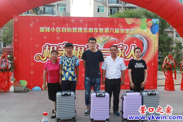 王大媽看到自己上大學(xué)的孫子和小區(qū)的其他幾位大學(xué)生在鄰里節(jié)這天,每人都得到了小區(qū)居民集體出資購買的拉桿箱,王大媽無比的自豪:“我們雷鋒小區(qū)5年來共考出去43名大學(xué)生,小區(qū)自治管理委員對每名考取大學(xué)的學(xué)生都給予獎勵!我們小區(qū)的物業(yè)費每平方米只有三角六分錢,這在營口甚至全省也是少有的,住在我們小區(qū)里安全、干凈、舒心,我們?nèi)掖蛐难劾锔械叫腋?rdquo;!