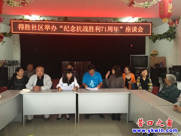 最后社區(qū)劉書記作總結(jié)發(fā)言,她說“這次的座談會意義深遠,回顧以往的斗爭,銘記歷史,在艱苦抗戰(zhàn)的歲月里戰(zhàn)士們拋頭顱、灑熱血,他們的精神與日月同輝、與天地共存”,從今天開始,我們紀(jì)念抗日戰(zhàn)爭勝利71周年的主題活動就正式開始了,在今后的半年時間里,我們還要用不同的形式,不同的載體來開展各項紀(jì)念活動,時刻與黨中央保持高度的一致。