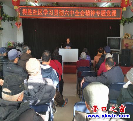 為深入開(kāi)展“兩學(xué)一做”學(xué)習(xí)教育, 2016年11月17日,得勝社區(qū)黨委舉辦了“得勝社區(qū)學(xué)習(xí)貫徹六中全會(huì)精神專題黨課”,此次黨課邀請(qǐng)到得勝社區(qū)讀書(shū)演講協(xié)會(huì)會(huì)長(zhǎng)、得勝社區(qū)優(yōu)秀共產(chǎn)黨員孫秀鋒主講,參加學(xué)習(xí)的黨員40余人。會(huì)上,孫大爺從《關(guān)于新形勢(shì)下黨內(nèi)政治生活的若干準(zhǔn)則》、《中國(guó)共產(chǎn)黨黨內(nèi)監(jiān)督條例(試行)》,進(jìn)一步加強(qiáng)制度化,為全面從嚴(yán)治黨方面做了詳細(xì)講解。要求黨員干部必須領(lǐng)會(huì)六中全會(huì)精神,在工作中要做到開(kāi)拓創(chuàng)新、自強(qiáng)不息,腳踏實(shí)地、任勞任怨立足于本職工作。