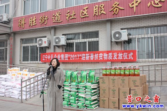 在春節(jié)即將到來之際,為了使轄區(qū)內(nèi)的困難群眾能過上一個歡樂、祥和、喜慶的新春佳節(jié),1月17日下午,得勝街道辦事處與遼寧中天企業(yè)集團攜手舉辦2017年迎新春“愛心企業(yè) 幸福得勝”扶貧濟困物資發(fā)放儀式活動。區(qū)人大主任王家全同志、西市區(qū)慈善總會會長劉麗華同志、區(qū)民政局副局長李洪珍同志參加了本次活動。