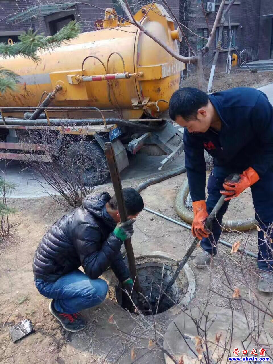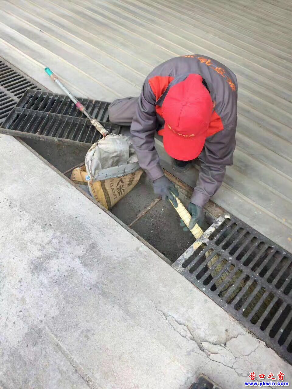 化糞池旁員工在清掏、有的在清掏排水井篦子、擦拭業(yè)主便民車、洗刷水系……