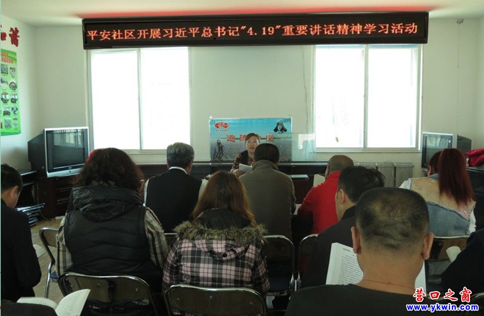 2017年4月19日,是習(xí)總書記重要講話一周年之際,平安社區(qū)工作人員組織轄區(qū)居民在二樓會議室開展《平安社區(qū)開展習(xí)近平總書記“4.19”重要講話精神學(xué)習(xí)活動》。
