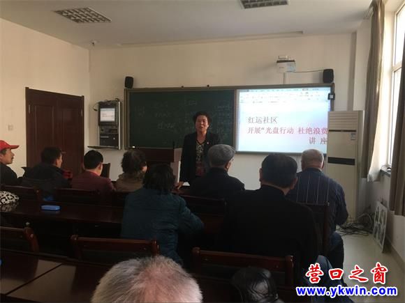 由紅運社區(qū)黨委書記劉榮爽主講,在講座中,劉書記引導(dǎo)居民從自身做起,樹立節(jié)約意識,踐行“光盤行動”,拒絕剩宴,文明節(jié)儉用餐。宣傳節(jié)約理念,從自我做起,從點滴做起,從餐桌開始,將口號變成行動,將行動化為習(xí)慣,將習(xí)慣成為美德。居民們聽后也深有感觸,表示:現(xiàn)在搞攀比、講排場的不良現(xiàn)象很多,他們將繼續(xù)崇尚節(jié)儉,把勤儉美德發(fā)揚光大。