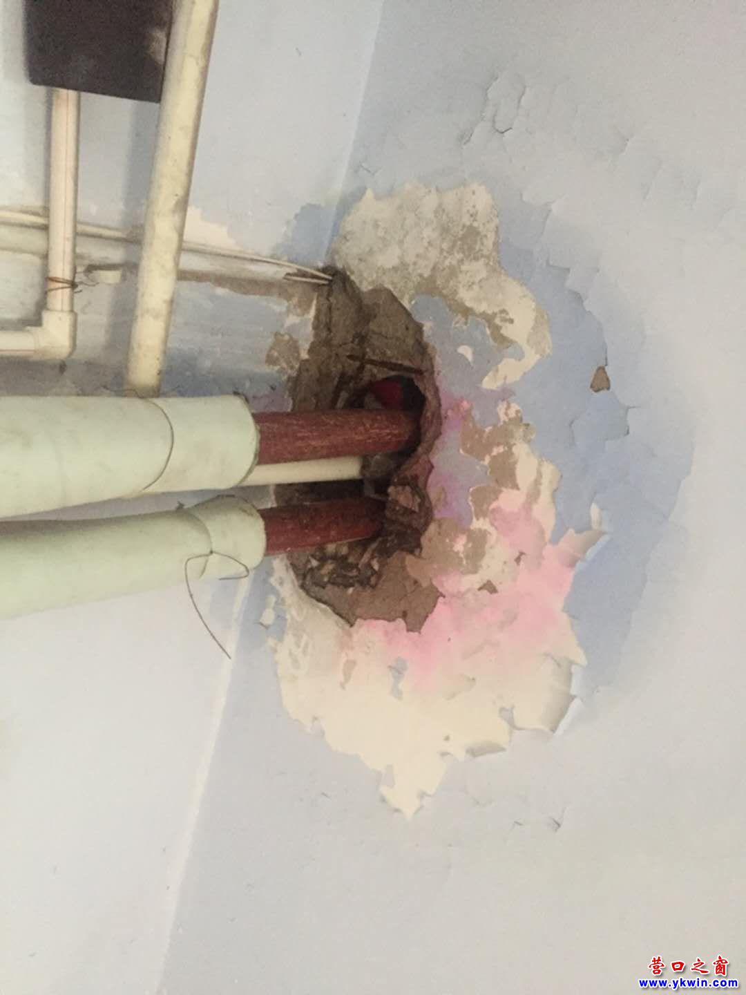 網(wǎng)友鄭先生是營(yíng)口鲅魚圈區(qū)濱海街51號(hào)樓4單元居民,小區(qū)是散樓無(wú)物業(yè)。他家供暖閥門漏水,冬天一供暖樓道里就全是水,老人孩子走路十分不方便,四到六樓都有發(fā)生老人摔倒受傷等情況。網(wǎng)友為查找漏水原因,把六樓保溫棉拆開,看到鐵管已經(jīng)大面積生銹,再不解決會(huì)對(duì)相關(guān)財(cái)產(chǎn)造成極大損失,后果可能是花更多的人力物力財(cái)力更換生銹了的鐵管,這很有可能影響未來(lái)老百姓的供熱問(wèn)題。