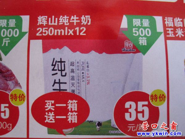 “告訴你一個(gè)好消息,XXX超市賣XX純牛奶買一箱,送一箱。”4月11日,此廣告在朋友圈中廣為傳播。這條消息的來源是此前營口市某超市發(fā)放的DM單:XX純牛奶35元一箱,買一箱,送一箱。計(jì)算起來,該超市此次出售的這種純牛奶平均17.5元一箱。