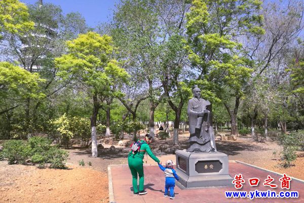 營口楞嚴寺公園里豎立著12尊古代先賢塑像,其中,蔡倫的塑像好像有點問題。