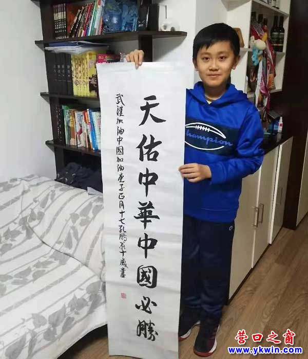 孔鵬策,10歲,營口市青年小學(xué)五年二班學(xué)生,春節(jié)期間除了玩,還是在家看書,做作業(yè),練字畫畫彈琴等個人的興趣愛好。疫情發(fā)生以來,不能出門玩,宅在家里,用自己的一點點力量支援前線,于是寫字,畫畫來助力支援第一線奮戰(zhàn)的將士們,爭取早日戰(zhàn)勝困難,平安凱旋!
