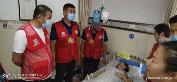 迪邦志愿者冒著雨來到鲅魚圈區(qū)醫(yī)院看望高延梅,高延梅大姐,看見我們到來,大姐感動(dòng)的哽咽著就是哭說不出話來, 看見我們像看見了自己家人,拉著志愿者的手說自己得病不能干活,給女兒增加了生活負(fù)擔(dān),原本與女兒外孫一家三口過著平靜的生活,不幸患病打破了原本平靜并且不富裕的生活,女兒照顧我不能照顧家也不能出去工作,生活的拮據(jù)更是雪上加霜,更加困難.迪邦愛心團(tuán)隊(duì)獻(xiàn)出愛心五千元,并且?guī)в幸话僭?捎去了我們迪邦團(tuán)隊(duì)全團(tuán)隊(duì)的問候和祝愿,女兒沈辰感動(dòng)的留著眼淚說謝謝叔叔阿姨 你們的這份愛,融入我的生活,使我感受到前所未有鼓舞,我一定要幫媽媽治好病,將一條暗淡的生活之路走成明亮的大道.。