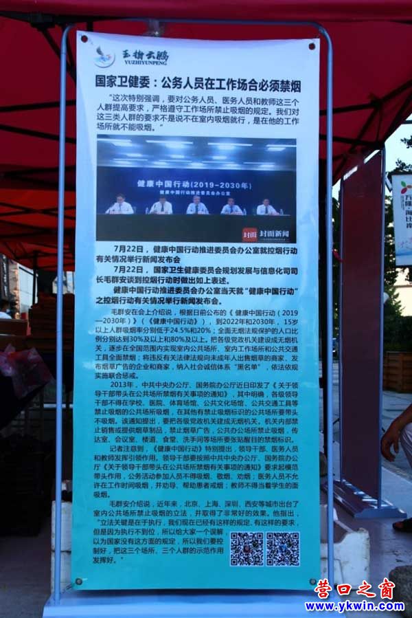 8月29日下午四點,營口市鲅魚圈區(qū)志愿者聯(lián)合會20多名志愿者在會長王麗娥的帶領(lǐng)下,于鲅魚圈萬隆廣場舉行了一場以“珍愛生命,拒絕煙草”為主題的戒煙、控?zé)熜麄骰顒??;顒蝇F(xiàn)場布置了宣傳牌匾,懸掛的橫幅上寫著“人人參與控?zé)熁顒?,共?chuàng)健康無煙環(huán)境”。志愿者熱情向廣大咨詢者宣傳戒煙、控?zé)熡嘘P(guān)知識和解答問題,并幫助推薦戒煙方式方法。為了擴大宣傳效果,現(xiàn)場同步進(jìn)行了網(wǎng)絡(luò)直播。